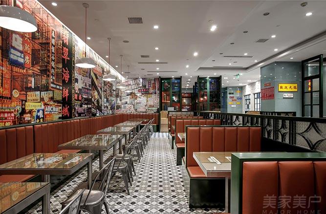 有人想找食材,也有人想品情怀。踩着马赛克铺装的地板,坐在皮质包厢的卡座上,倚着背后的三色窗花玻璃,吃着用鸡公碗装盛的食物,一派六、七十年代香江风貌。很多人喜欢来这种茶餐厅吃饭,墙上贴着旧时的海报,伙计下单的叫唤声此起彼伏,市井气、岁月感扑面而来。