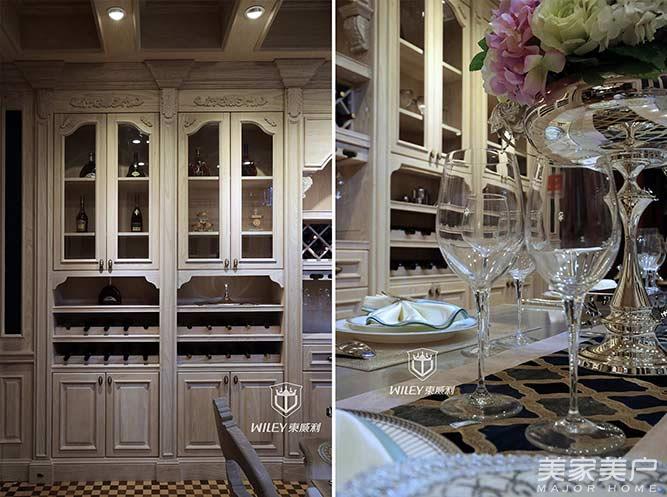 时尚简约的酒橱,拥有艺术的外观与实用的内在,高贵典雅,为我们带来了唯美的视觉冲击力,使整个餐厅气氛奢华而不张扬。