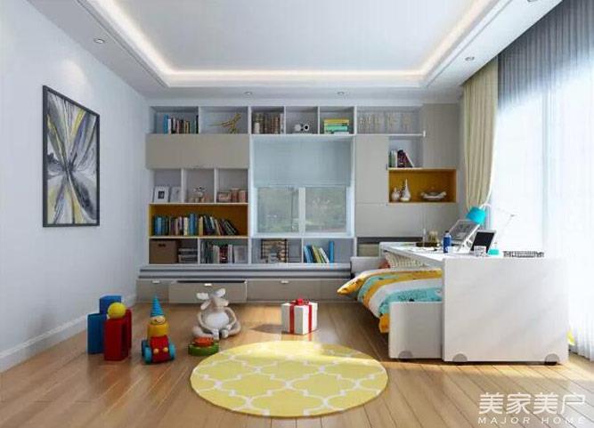 天花板的装饰越简单越好,颜色要统一。过于混杂浮夸的颜色或造型装修,孩子躺在床上时或者夜晚醒来时会觉得害怕。