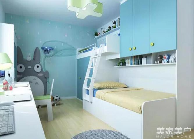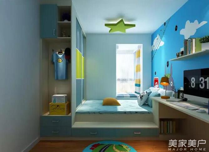 儿童房的色彩搭配很重要,但是色彩要符合儿童的健康色,不宜太过夸张。更不要在墙上贴怪异的图像,也不要在桌面上摆一些浮夸的图片。培养孩子的想象力,并非越抽象越好。