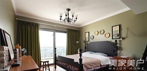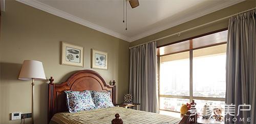 点评:卧室作为主人的私密空间,主要以功能性和实用舒适为考虑的重点,卧室多用温馨柔软的成套布艺来装点,同时在软装和用色上非常统一,多以冷色调和中色调为主。现代美式多用非炫目灯光,且尽量做到只见光不见灯的效果。