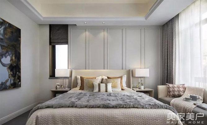 主卧设计温馨柔和,简洁的空间承接着煦和的自然光线,清浅的米色与白色交织,如絮般的温柔,如和风般的轻软,似乎具有抚慰人心的治愈效果。好的设计正在于细致的体验感受,而不只流于精彩视觉效果。
