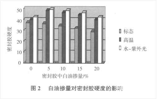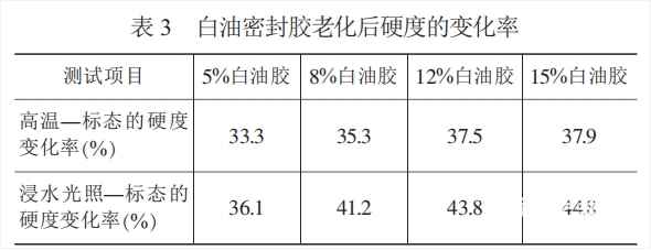 试验表明,500 小时充油胶弹性急剧下降、硬度由35上升到58(普通接缝密封胶硬度在25-45),3500 小时便出现脱胶;