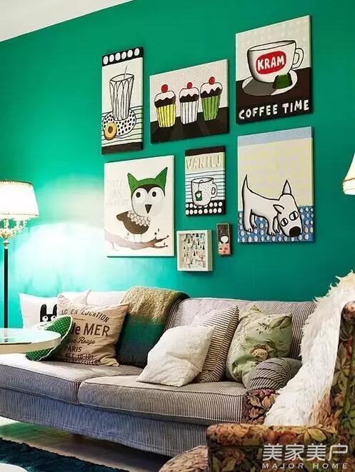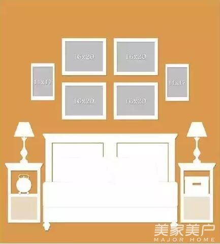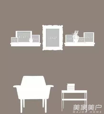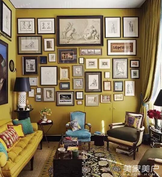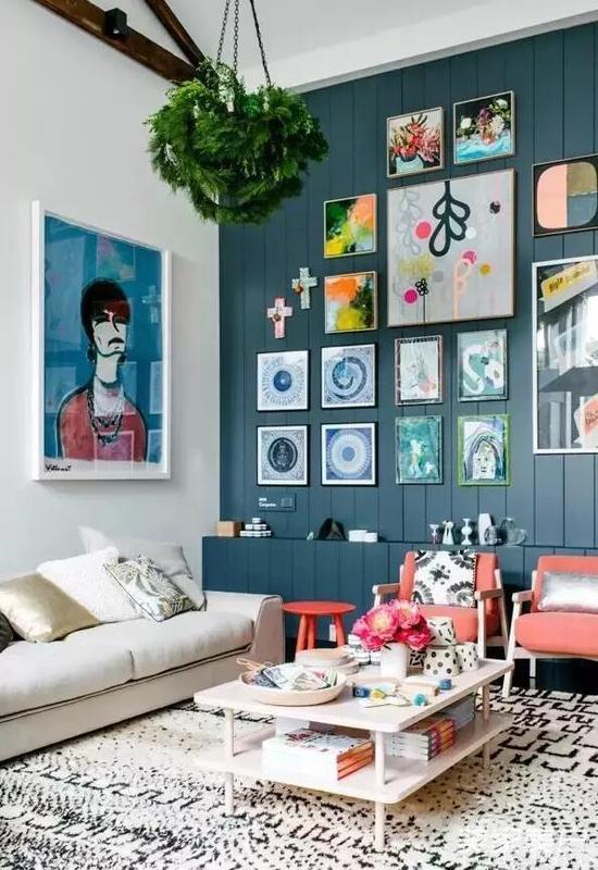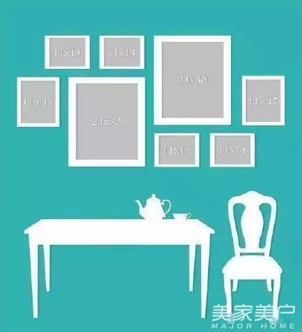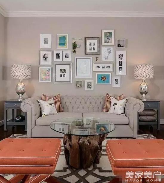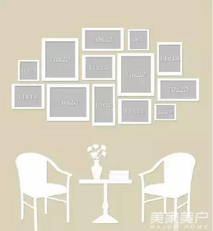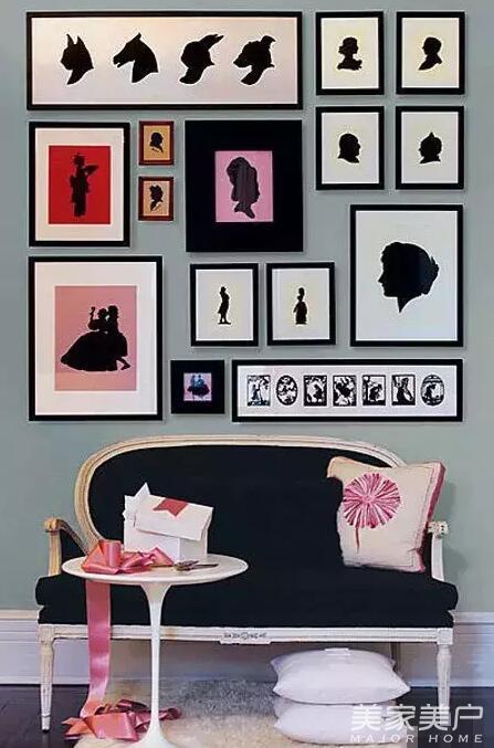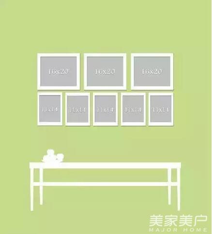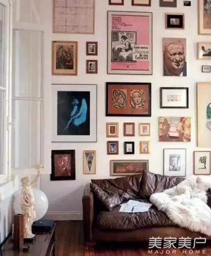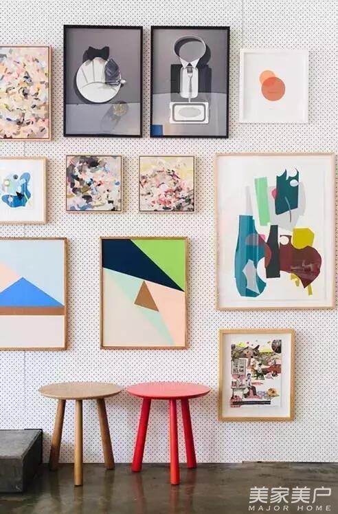 整齐排列的大、小相框,对颜色的搭配要求不高,也不容易出现视觉上的混乱。
