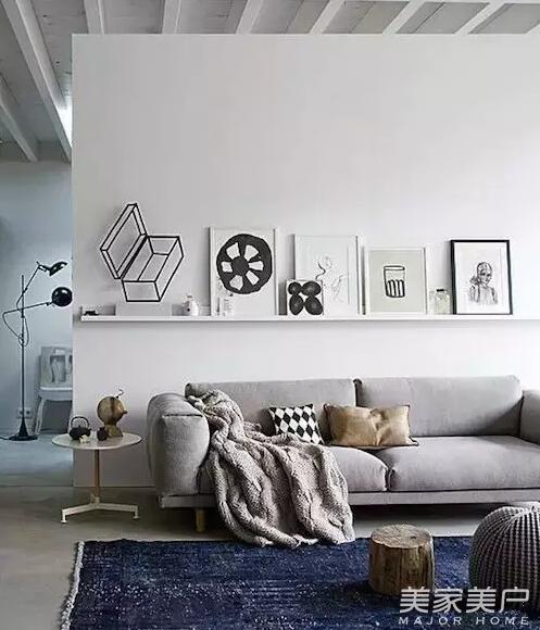 只放一块长隔板,可以突出整体感,适用于沙发墙、床头背景墙这样大面积的位置。