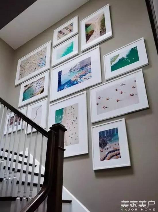 TIP5:楼梯的墙面放大件的装饰物不太实用,照片墙再实用不过了!