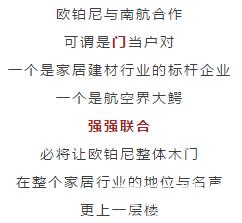 强强联合,欧铂尼木门携手南航发布“重磅消息”!