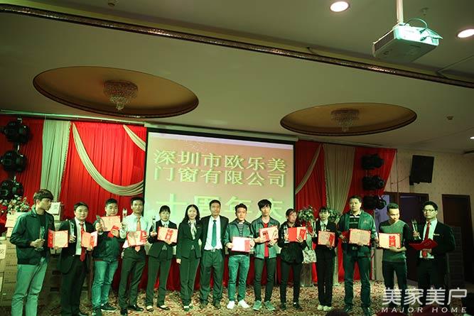欧乐美门窗总经理曾鸿辉、副总经理谌莲共同为优秀员工颁奖