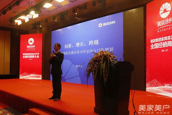 展辰家具漆营销服务中心总经理黄少车做《创新、增长、跨越——集团家具漆业务2016总结及2017规划》主题报告。2017年,展辰集团在复杂快速多变的行业大环境下,整体业绩领跑行业,家具漆业务增长10.14%,渠道建设、技术服务、培训工作,都有长足进步。2017年,整体增长目标26%以上,其中UV及水性要实现44%的飞速增长。展辰家具漆作为国内家具漆龙头企业,2016年取得了两位数的增长,这也是国内涂料企业第一次直接把企业的营收情况对外公布,开创涂料行业先河。