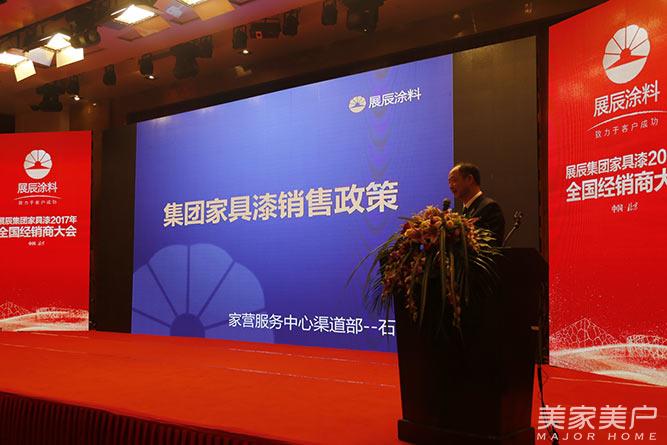 展辰家具漆营销服务中心渠道部总监石剑青讲解展辰集团家具漆销售政策,为2017年发展展辰集团的发展制定政策。