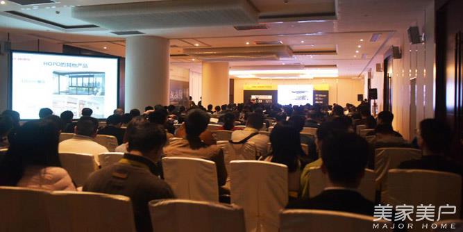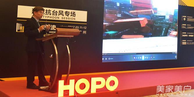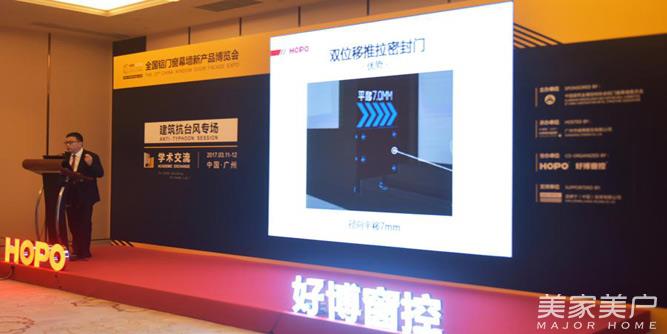 HOPO好博窗控营销中心总经理米建军先生,从门窗安全角度,以“抗台风、保安全——台风环境下门窗创新应对解决方案”为主题,为现场观众阐述了多种创新性解决方案,抗台风能力强、安全性能高、密封性能好的抗台风门窗——双位移推拉密封门窗,比欧标C槽承重性、安全性更高的K(宽)槽系列产品,以及阳台折叠窗、厨房自动门等创新型产品解决方案。