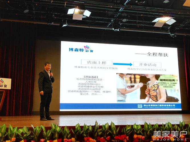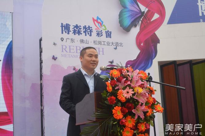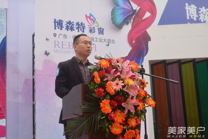 广东省门业协会副秘书长喻凯先生在致辞中讲到:以佛山为中心,是中国铝型材和铝门窗的重要生产基地,其总量超过全国的三分之一。随着时代的不断发展,大数据时代已经到来。而门窗行业作为泛家居行业的最后一块蛋糕,正趋于发展的最佳时机。然而机会是留给有准备的人,博森特彩窗的远见和魄力,让行业对其充满期待,在短短发展几年里,迅速提高市场份额并成功乔迁至两万平方现代化厂房,相信博森特一定能给大家创造一番大事业,开拓一片新天地!