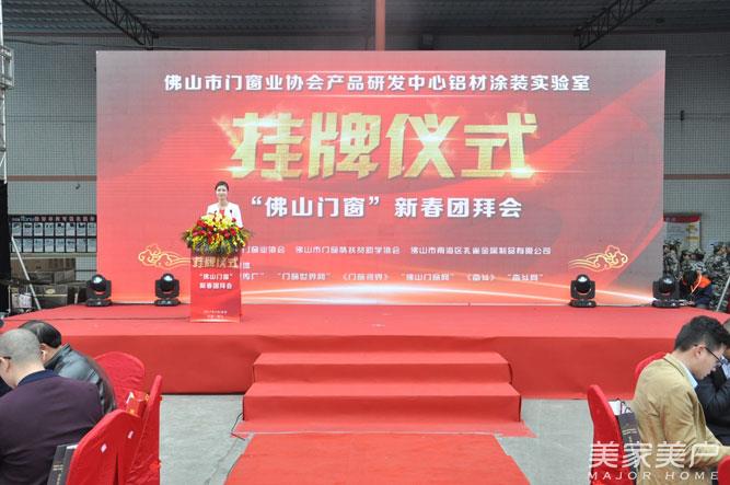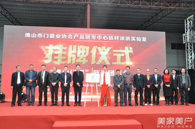 随后,佛山门窗业协会会长吴国洪等相关领导与贺总共同上台主导揭牌仪式,正式为佛山市门窗业协会产品研发中心铝材涂装实验室揭牌,户诚秘书长向贺总授予实验室副主任聘任证书,各嘉宾共同合影留念,记录下这一激动人心的时刻。