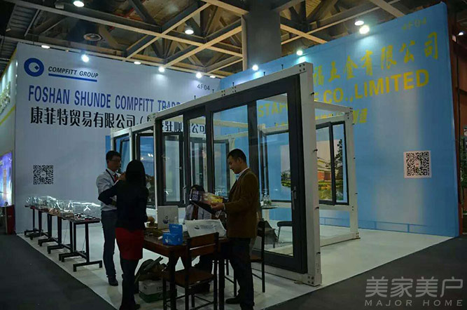 斯坦福五金注册的名字是staforce,这来源于一家丹麦的门窗五金生产商。公司的发展专注门窗五金领域,以推广振兴五金为方向。斯坦福自己研发的产品,主要有几个特点:外开定位(外开窗同时可以用把手定位)、隐藏式定位、外开侧滑(这个侧滑可以达到80公斤称重,看上去像荷叶,是隐藏在门窗里面的)。展会上,斯坦福展示的门窗高1.8米,宽1.2米,做到了门窗的极限。斯坦福五金的产品目标是耐久性35年,10年的质保期,有品质保证但不贵。此外,斯坦福从出口产品转换为国内品牌,在国内销售的价格不会太高,具有性价比高的优势。