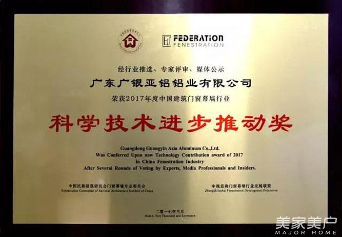 亚铝凭借过硬的品牌实力和雄厚的科技力量,荣获2017年度中国建筑门窗幕墙行业“科学技术进步推动奖”。这不仅是行业对亚铝的肯定,还是广大消费者对亚铝品牌的信赖,也是促进公司创新发展的强劲动力。