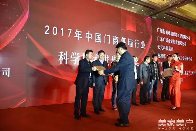 AAG亚铝荣获2017年度中国建筑门窗幕墙行业 “科学技术进步推动奖”