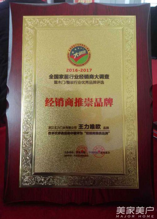 王力唯欧荣获”2016-2017经销商推崇品牌“