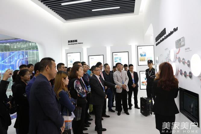走进展厅,工作人员向参观人员展示工业4.0数码化定制的操作、全屋家具定制的流程及信息化制造的流程。