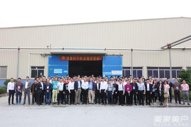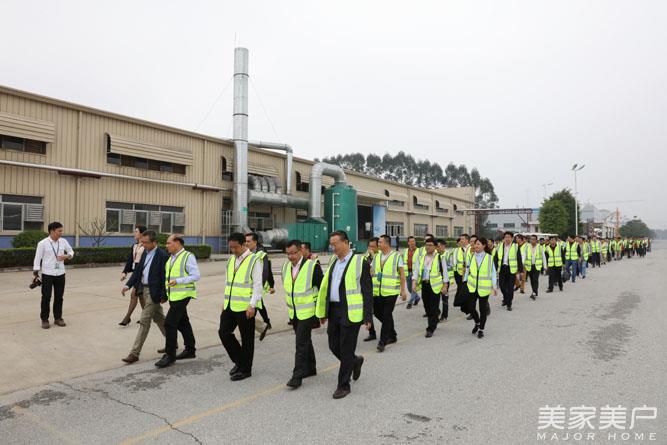 下午2点,参观团队前往肇庆市现代筑美家居有限公司进行深度考察。参观团队先后参观了筑美家居制造中心PVC门厂的组装车间、加工车间、包装车间、包覆车间等。碧桂园现代筑美家居制造中心总经理邢津生负责讲解车间内先进的进口制造设备、加工设备,让参观团队的企业家们都赞叹不已。