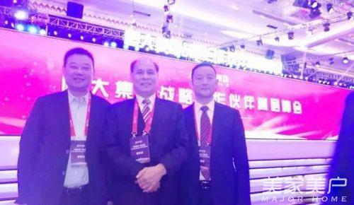 木门三巨头:千川木门董事长骆正任(右一)与梦天木门董事长余静渊(左一)、润成创展董事长关润开(中)合影