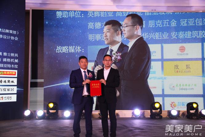 广东省门业协会铝门窗专委会会长、派雅门窗董事长李钧洪为新任专委会秘书长喻凯授牌