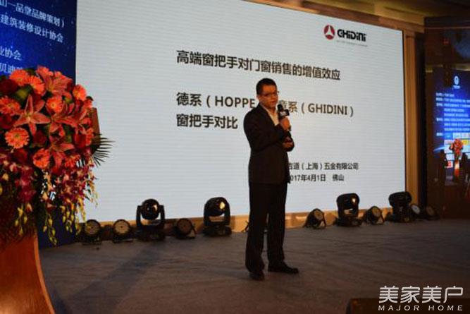 随后,河南龙旺钢化真空玻璃有限公司李宏彦博士演讲玻璃在建筑门窗环节中的重要性以及使用功能;吉蒂尼(中国)董事长丁敏演讲:德国(HOPPE)和意系(GHIDINI)把手的对比及高质量把手对门窗的增殖效应;广东省门业协会副会长、新帝豪门窗董事长钟金福演讲:居室铝门窗企业如何完成家装与工装的跨越?