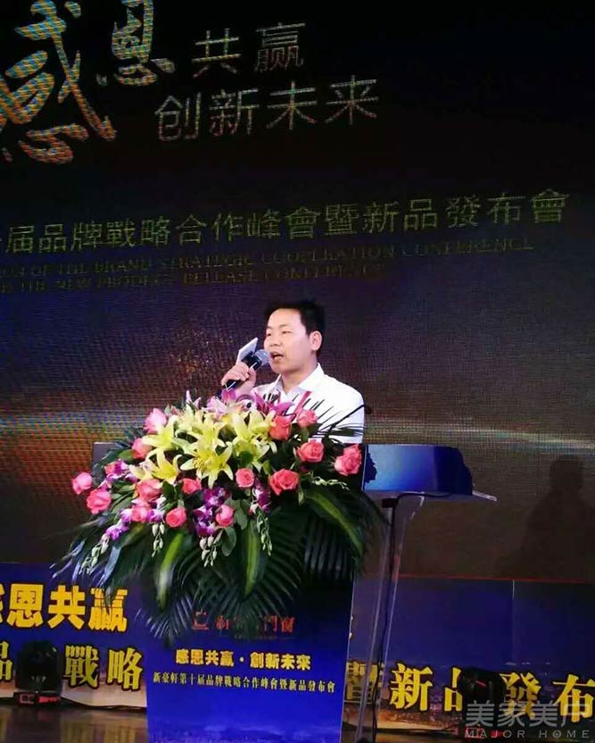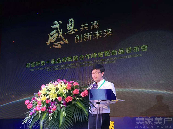 会上,新豪轩营销总监戚冰锋首先致辞,戚总监介绍了新豪轩在过去一年取得的成绩以及这一年营销上的战略部署,并感谢全体经销商对新豪轩一直以来的支持,并承诺新豪轩会与全体家人共创美好的明天。