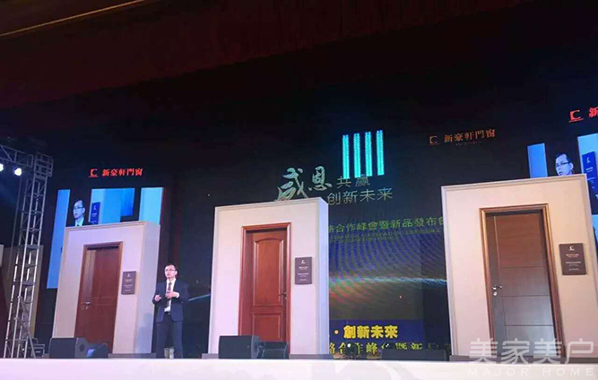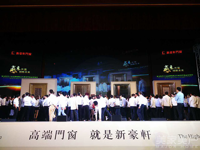 5月20日,“感恩共赢·创新未来”新豪轩第十届品牌战略合作伙伴峰会暨新品发布会在佛山绿湖温泉度假酒店隆重举行。新豪轩集团董事长冯董,新豪轩集团总经理冯文生、梁剑新、黎国亮,新豪轩财务总监胡志容,新豪轩木门分公司总经理胡振深,新豪轩营销总监戚冰锋,新豪轩集团营销副总监尹显青,和君智业老师徐伟,央视代表于现叶、陆红伟,广东省门业协会副秘书长喻凯,飞幕集团亚太区运营总监James Willianm,飞幕集团中国营销总监吴坚,飞幕集团项目经理钟雄明等领导嘉宾以及新豪轩全国经销商900余人出席活动。美家美户家居网、《居舍·中国门窗》、慧亚传媒、广州日报、慧聪网、信息时报、网易家居、新浪家居、搜狐家居等多家知名媒体现场报道。