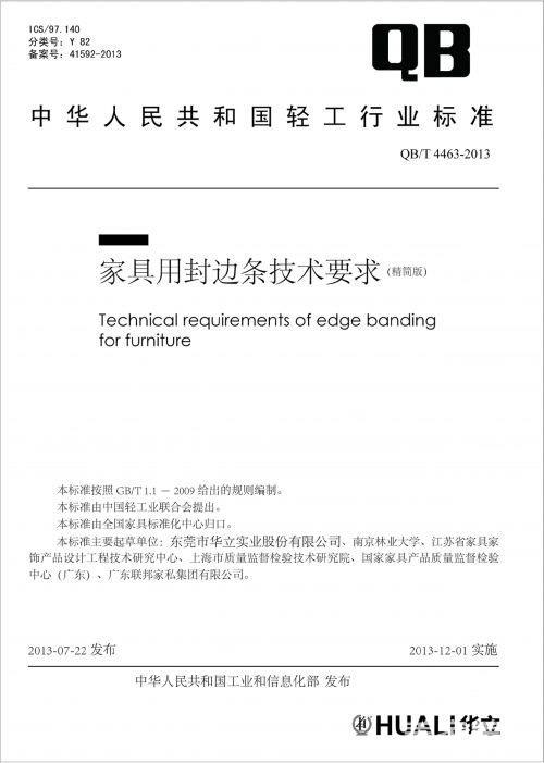 从1995年国内首家生产纸塑封边产品,到2000-2005年PVC封边、ABS封边及异型线材产品上市;再到2008年成为国家火炬计划重点高新技术企业;同时,作为行业标准的有力推动者,2013年12月1日,华立股份牵头制定的首个行业技术标准《家具用封边条技术要求》(QB/T4463-2013)正式实施。