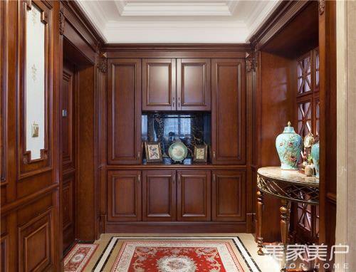 老检察长陈岩石家。作为退休老干部,传统中国画和青花瓷挂盘,这些有着中国传统特色风格的物件处处透露出陈老作为退休高干的文化修养,整体风格上红色木制品和棕色地板相得益彰。