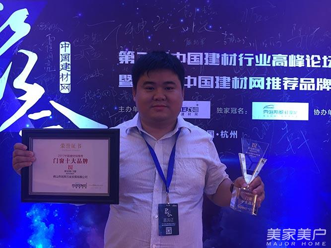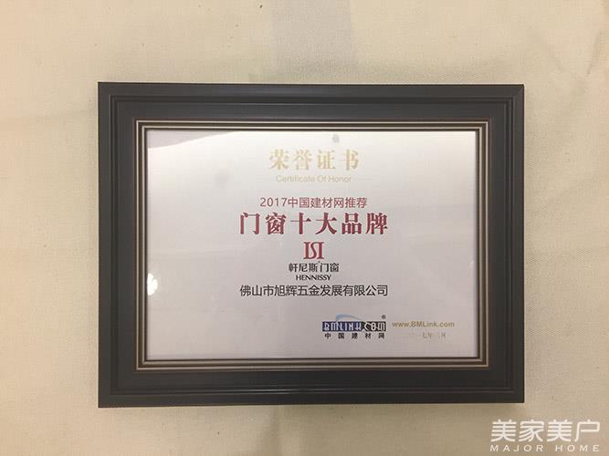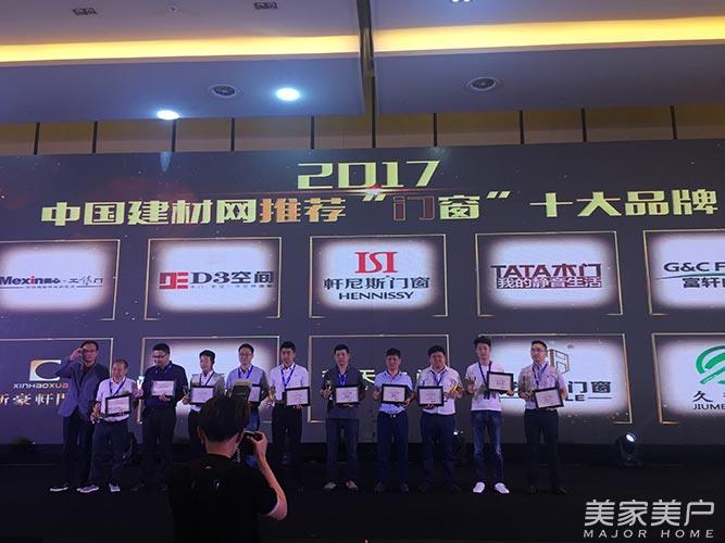 轩尼斯门窗荣膺2017中国建材网推荐“十大品牌”