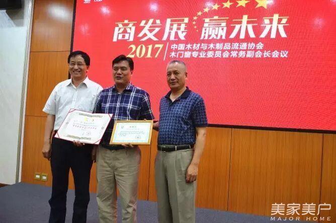 会议期间,为表示对本次会议的大力支持,刘能文会长和李佳峰秘书长为汇龙陈辉庭董事长送上致谢信表示谢意,授予汇龙涂料有限公司“2017年中国木材与木制品流通协会木门窗专业委员会常务副会长会议承办单位”荣誉称号。此外,多家木门企业与汇龙公司达成合作意向。
