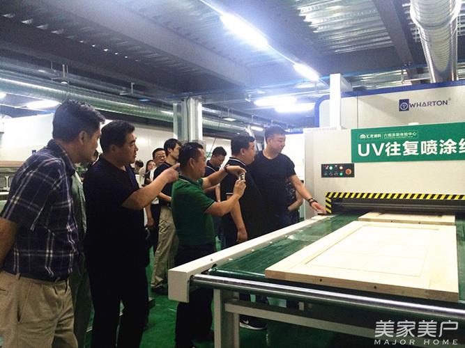 上午9点整,与会代表乘车到达汇龙涂料六维涂装体验中心,在工作人员精心的安排和系统的讲解下,参观了六维涂装体验中心生产车间和展厅。不用一滴油性油漆的木门涂装,通过正在热火朝天地进行生产的UV真空喷涂线、UV真空辊涂线、UV往复喷涂线、水性五轴自动喷涂线、水性往复自动喷涂线、微波红外干燥房等被直观地全面展示,让大家对“油改水”先行者汇龙涂料的有了全新的认知,纷纷观察询问、驻足拍照。