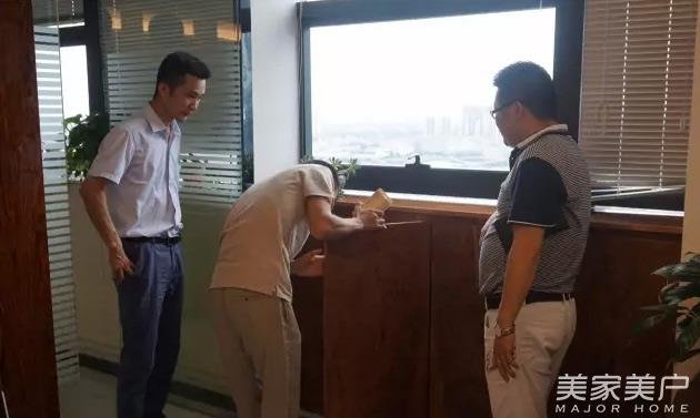 6月16日早上,李总一大早就从杭州飞了过来,当他来到我们的办公室之后,便忍不住对我们的样板、家具、甚至墙壁又摸又抠,并且不断发出惊叹“这硬度,真不错”“两年多了还这么白?”“这手感,太润了”。