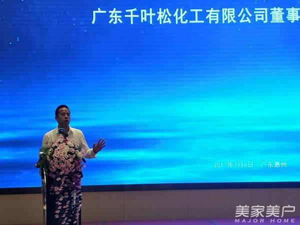 随后,广东千叶松化工有限公司董事长何爱辉上台致辞,对各知名企业、行业协会的嘉宾、及到场的媒体表示欢迎,并对本次活动流程进行介绍及盛情邀请到场嘉宾前往千叶松公司进行参观。