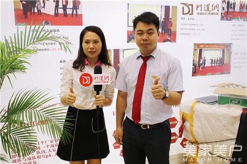 加维斯门窗营销总经理陈飞捷(右)接受媒体采访