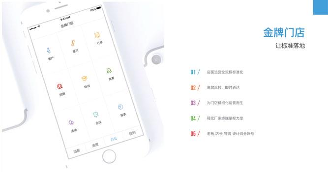 同时,每个产品的侧重点不一样,例如“接单王”是给店面的导购和驻点设计师这样的群体去使用,而“金牌门店”则分老板、店长、安装工、导购、设计师等等不同的账号,针对不同工作环节进行信息化的打通。而“设计圈”则由生产厂家来组织他的经销商整体的使用情况,可以向外扩展到所有设计资源的整合。尽管它们使用的群体都不尽相同,但乐家针对每一个环节和不用的用户群的痛点进行信息化的改造。