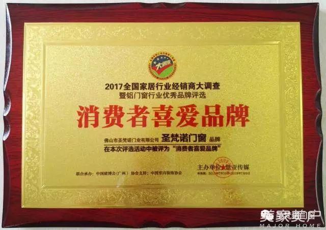 圣梵诺门窗荣获全国家居大调查“消费者喜爱品牌”!
