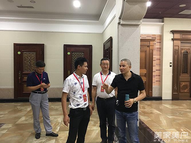 考察人员在艺和门业展厅交流