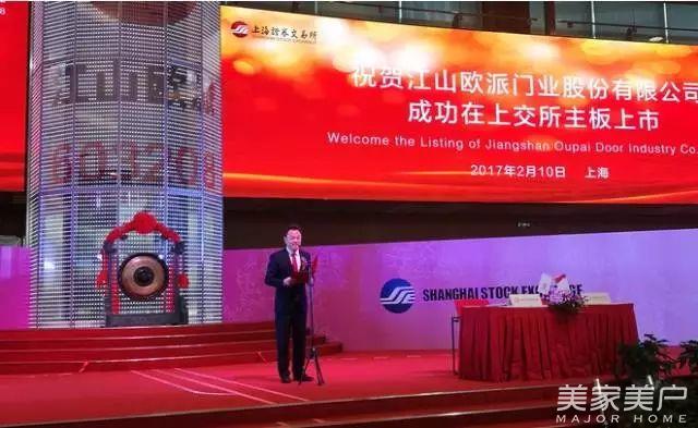 新年刚过,江山欧派门业就给木门行业带来一大贺礼。2月10日,欧派成功上市,顺利登陆上交所主板,成为木门圈首个上市A股的品牌。近两年,家居行业的上市潮可谓凶猛,江山欧派门业股份有限公司在上交所挂牌上市的消息,为中国木门行业开创了先河,同时也为诸多木门企业树立起榜样,吸引着更多的企业对资本市场蠢蠢欲动,希望借助资本力量在家居领域大施拳脚。