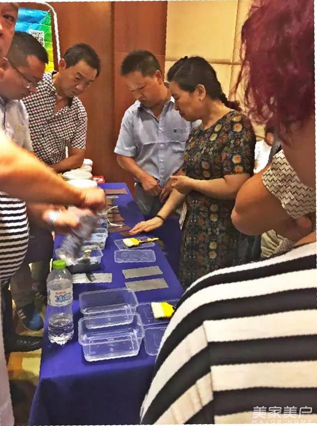 会议现场展示了水性工业漆样品、样板等实物。样板漆膜丰满、色泽艳丽,客户爱不释手,多位与会客户自己上台动手试刷产品,通过实际操作直观感受产品,易操作性、施工性能等得到了客户的认可和好评。营销团队成员与客户就水性工业漆合作具体细节现场进行了说明。