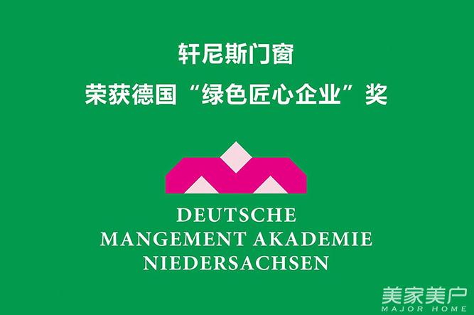 轩尼斯门窗荣获德国“绿色匠心企业”奖