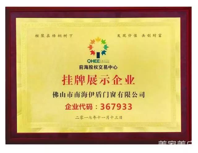佛山市南海伊盾门窗有限公司成功挂牌上市