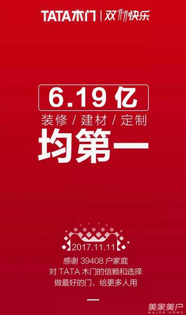 大家都看到了TATA木门双十一突破6亿元销售额大关