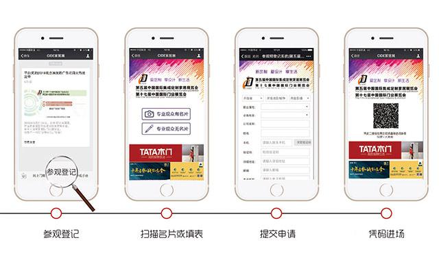 → 扫描名片或填表 → 提交申请→凭生成二维码进场
