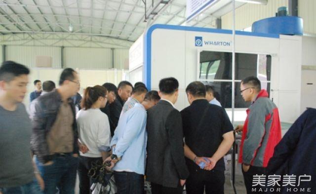 百川公司营销中心总经理谭健友介绍说,百川的拳头产品是PE底漆,百川的PE底漆VOC排放低于国家环保标准420g/kg,是国内首创净味PE底漆,也是唯一免征环保税的溶剂涂料。它的优势明显:快干,好打磨,施工周期比PU底快25%,涂装成本低,效果好,漆膜丰满,防下陷效果好,品种丰富,能满足所有门企的需求。