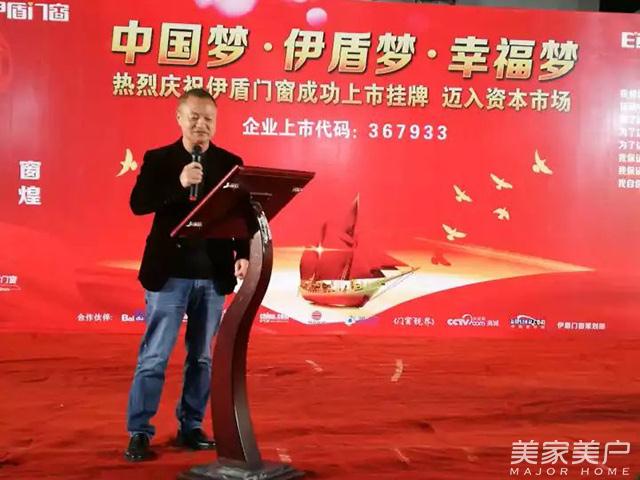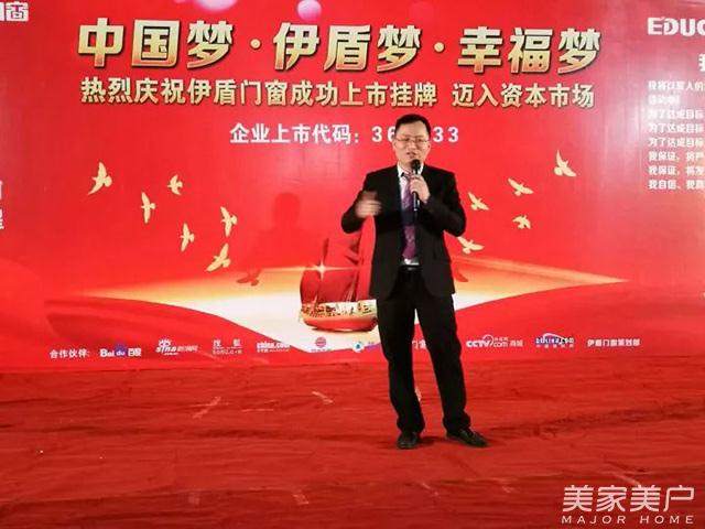 ▲伊盾门窗董事长为大会发表致辞