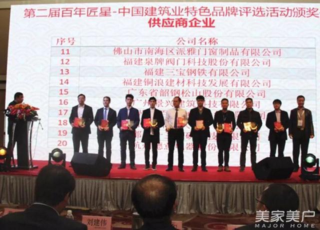 在本次高峰论坛上,还举行了第二届“百年匠星—中国建筑业特色品牌”评选活动颁奖仪式。本次评选共有一百余家优秀企业获得上述荣誉,派雅门窗作为唯一一家入选的铝合金门窗品牌,第二次荣膺“百年匠星”称号,与500强企业、国企、央企,质量信用好评企同台领奖。