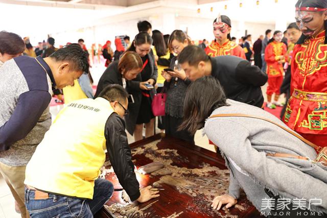 伴随着英歌舞的精彩表演,出席开业盛典的嘉宾们一同前往二楼门店参观,据工作人员介绍,华艺红木馆占地约1千平米,展馆内每套产品都有极高的审美和收藏价值。
