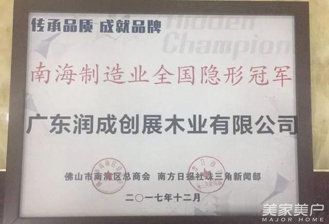 12月5日,由佛山市人民政府主办、南海区经济和科技促进局、南海区工商业联合会、南海区总商会、南方日报社珠三角新闻部承办的“南海区品牌企业行动计划发布暨南海制造业全国“隐形冠军”授牌大会”在佛山千灯湖酒店隆重召开,会议上,南海制造业全国“隐形冠军”企业推荐名单正式发布,其中广东润成创展木业有限公司凭借着在行业中非凡的影响力、卓越品牌定位及优质服务等强大优势位居行业榜首,荣获“隐形冠军”称号!